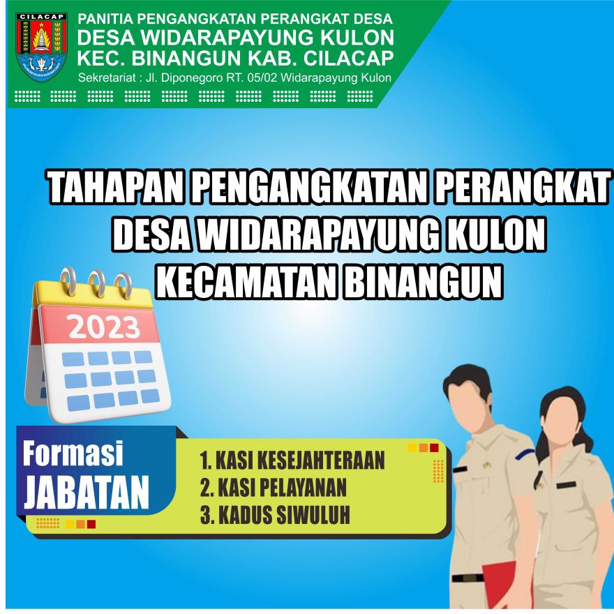 Berikut Tahapan Pengangkatan Perangkat Desa Widarapayung Kulon Kecamatan Binangun Kabupaten Cilacap untuk Formasi Jabatan Kasi Kesejahteraan, Kasi Pelayanan dan Kadus Siwuluh.